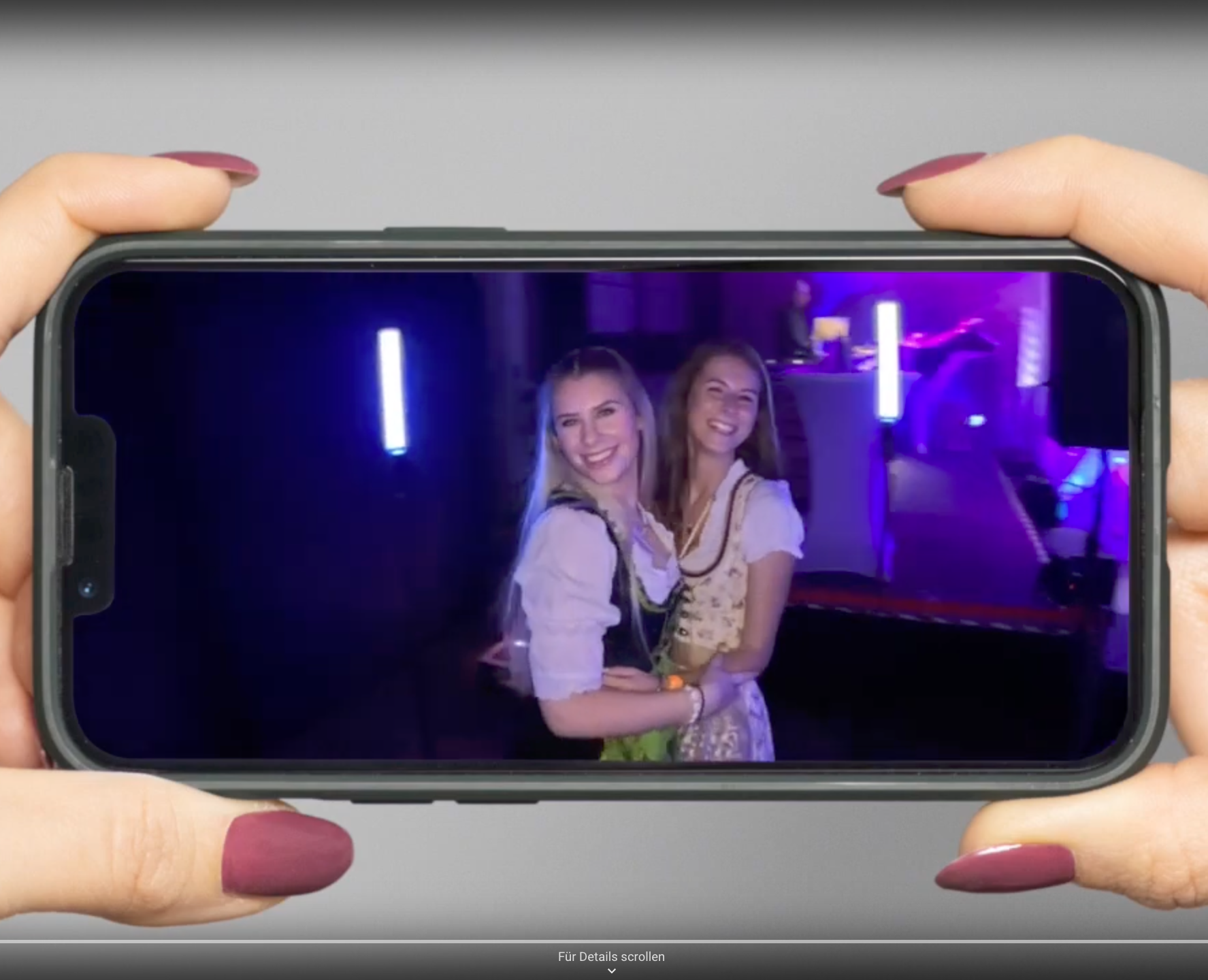 : Die entstandenen Videos können nahtlos auf verschiedenen Social Media-Kanälen geteilt werden. Von Instagram über TikTok bis hin zu X (Twitter) – nutzt die Vielseitigkeit des 360° Video-Booths, um deine Veranstaltung einem breiten Publikum zugänglich zu machen.