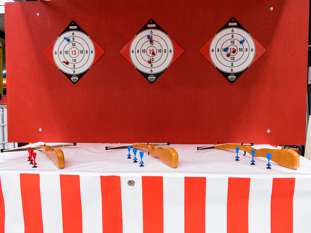 Das Armbrustschießen im Marktstand Rot-Weiß bringt klassischen Jahrmarktspaß auf dein Event. In diesem nostalgischen Marktstand können Teilnehmer ihre Zielsicherheit unter Beweis stellen und versuchen, mit einer Armbrust ins Schwarze zu treffen. Mehr lesen