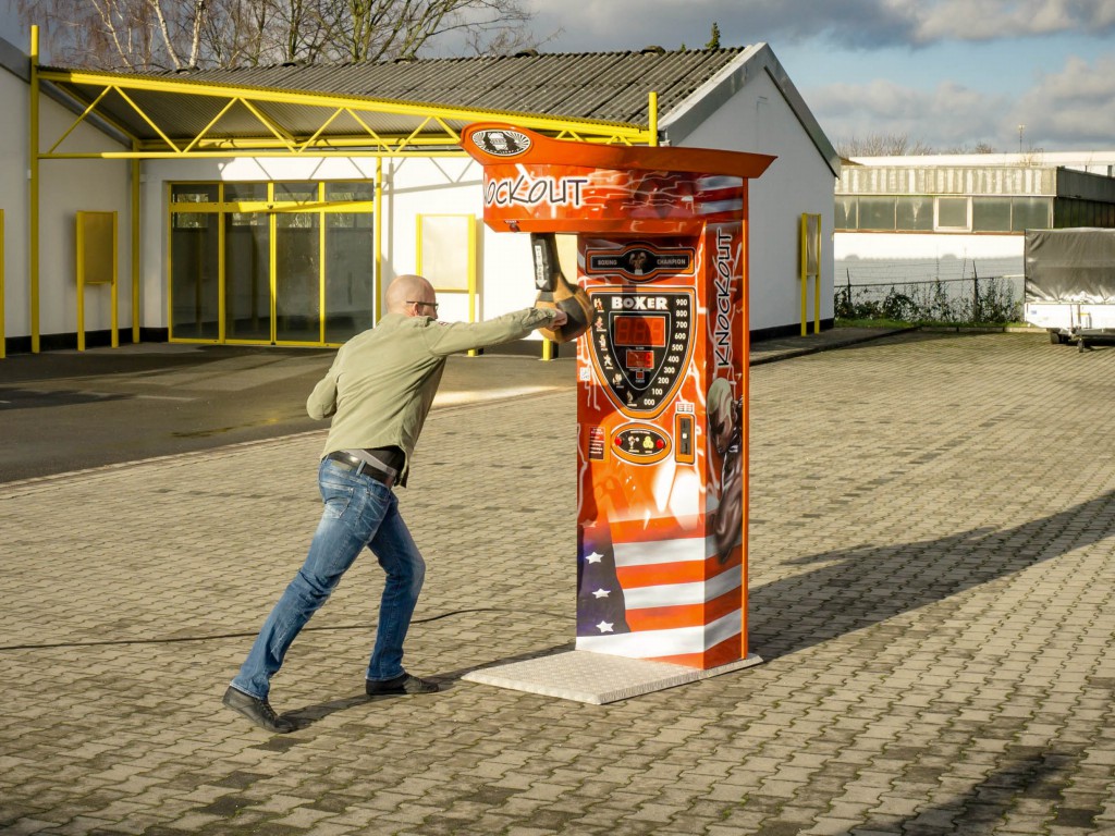 Der Boxautomat ist ein beliebtes Modul, vor allem bei den Männern. Wecke den Ehrgeiz deiner Besucher:innen und lasse sie ihre Schlagkraft unter Beweis stellen. Die digitale Anzeige garantiert einen fairen Wettkampf und die akustischen Kommentare sind ein zusätzlicher Spaßfaktor. Nutze den Boxautomaten nicht nur als Aktion auf deinem Event, sondern verbinde ihn mit einem Gewinnspiel. So erregst du noch mehr Aufmerksamkeit.