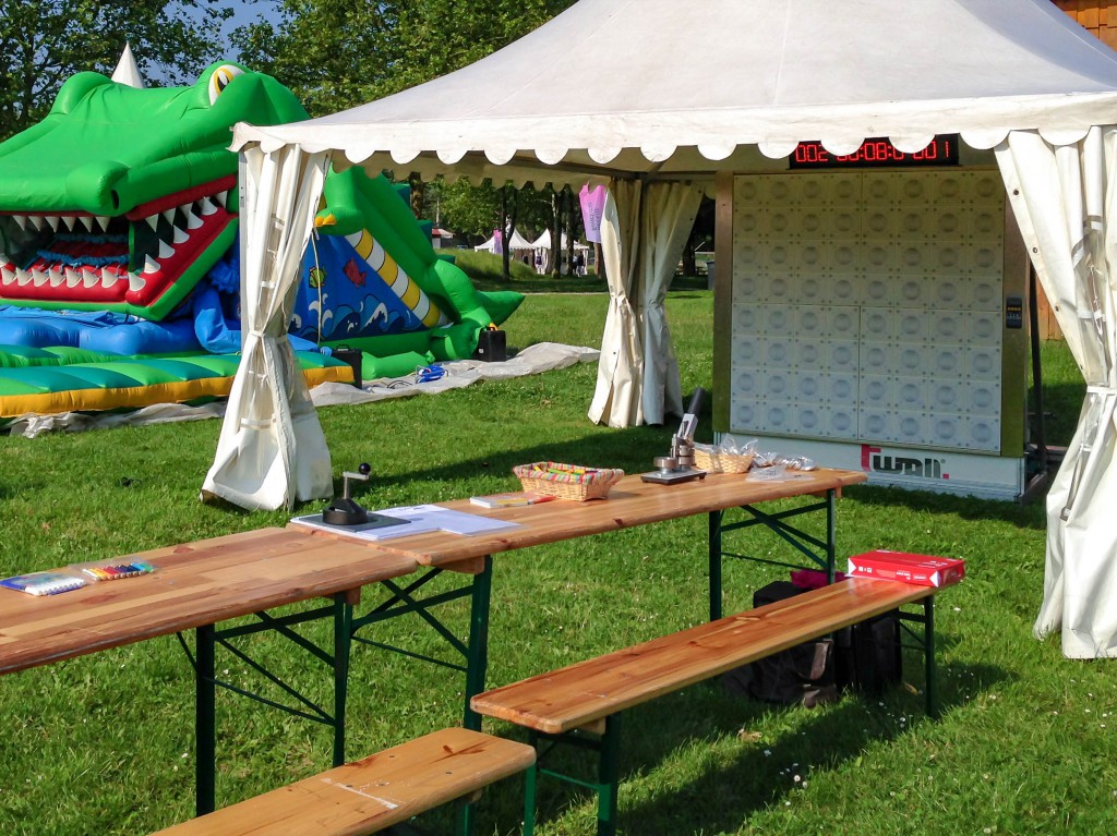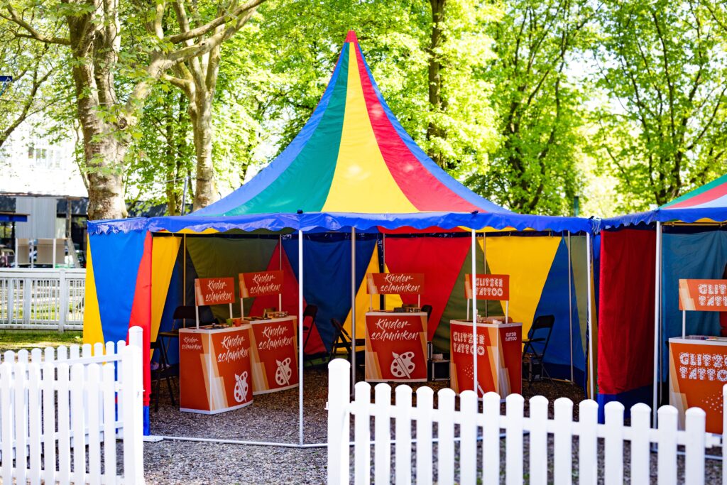 Gestalte deinen eigenen Button vor Ort! Ob als Spielmarke, Eintrittskarte, Namensschild oder einfach als Erinnerung – unsere Button Aktion ermöglicht es dir, Ansteckbuttons individuell zu bemalen, zu beschriften und zu stanzen. Selbst mitgebrachte Lieblingsfotos können zu einzigartigen Ansteckbuttons verarbeitet werden. Wir bieten auch die Möglichkeit, Buttons im Vorfeld mit deinem Firmen- oder Vereinslogo zu erstellen. Für Outdoor-Veranstaltungen empfehlen wir einen Zirkuspavillon als Überdachung.
