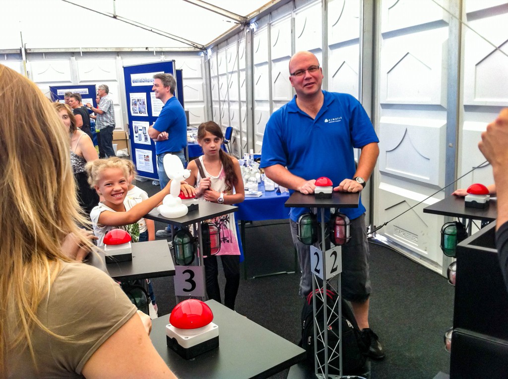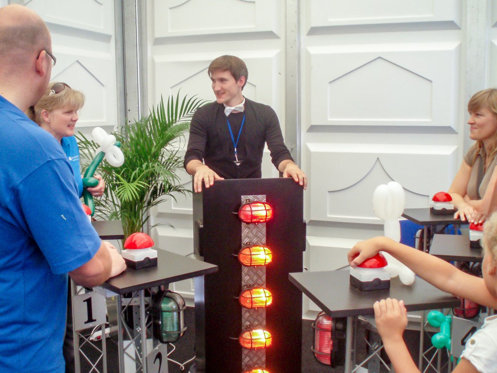 Veranstalte deine eigene Quizshow mit der Buzzer Quizanlage. Mit bis zu fünf Kandidierenden kannst du dein Firmen-, Freizeit- oder Allgemeinquiz spielen. Wer kennt die Antwort und schlägt als erstes zu? Mehr lesen