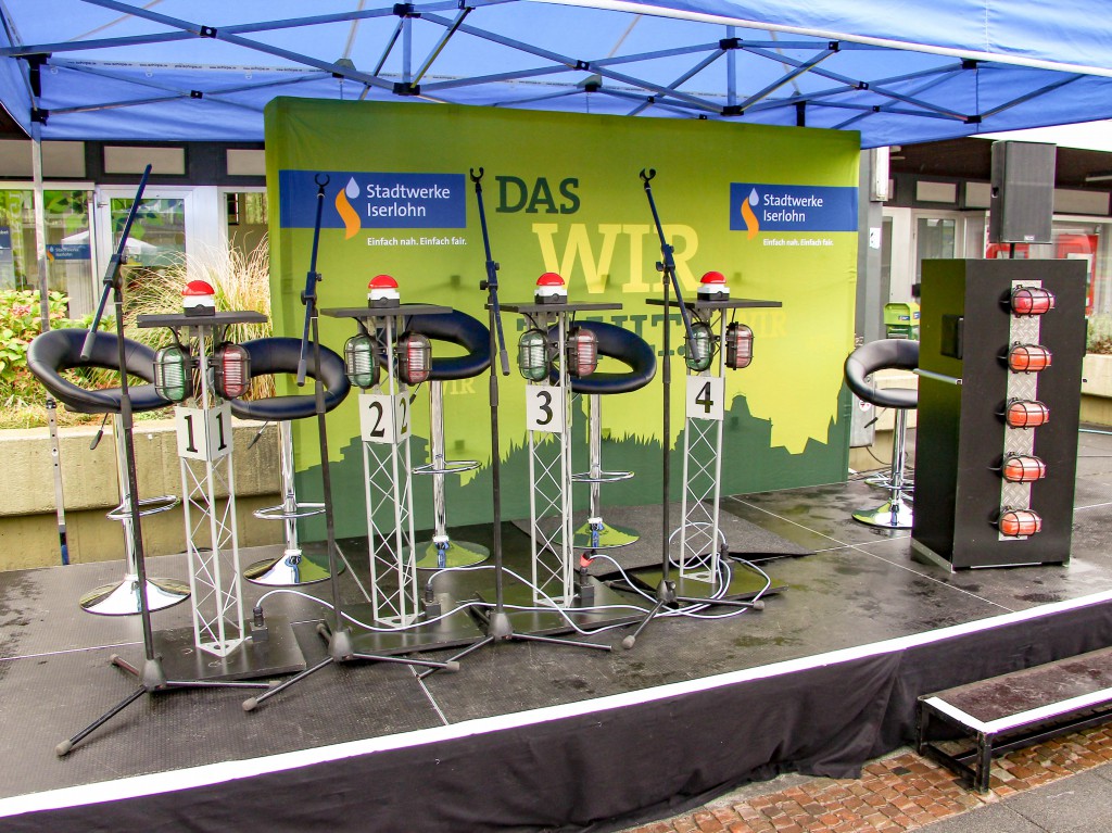 Veranstalte deine eigene Quizshow mit der Buzzer Quizanlage. Mit bis zu fünf Kandidierenden kannst du dein Firmen-, Freizeit- oder Allgemeinquiz spielen. Wer kennt die Antwort und schlägt als erstes zu? Du erhältst ein Rednerpult mit Ratezeitanzeige, einem optischen und akustischen Signal sowie bis zu fünf Kandidatenpulte mit großen Buzzern und Lichtanzeige. Optional kannst du einen Fernseher für Bilderrätsel hinzufügen und wir erstellen gerne Quizkarten für dich.