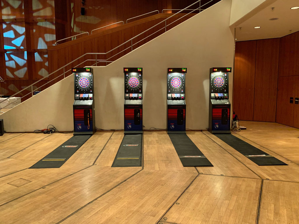 Unsere elektronischen Turnier-Dartgeräte sind für bis zu acht Personen ausgelegt und bieten alle typischen und bekannten Spiele. Eine ruhige Hand und ein fokussiertes Ziel sind beim Dartspielen das A und O. Miete unseren Dartautomaten, um deinen Gästen ein unterhaltsames Spiel zu bieten. Der Dartautomat hilft, das Eis zwischen den Gästen zu brechen und schafft ein positives Miteinander. Für größere Veranstaltungen empfehlen wir unsere Personenleitsysteme.