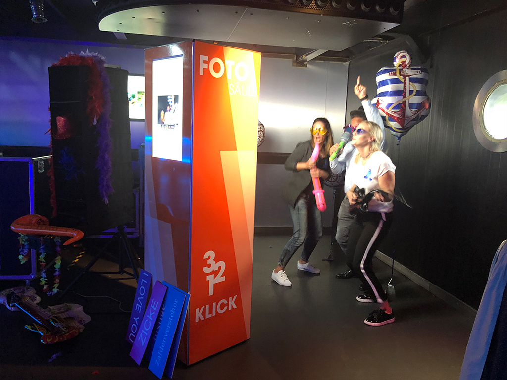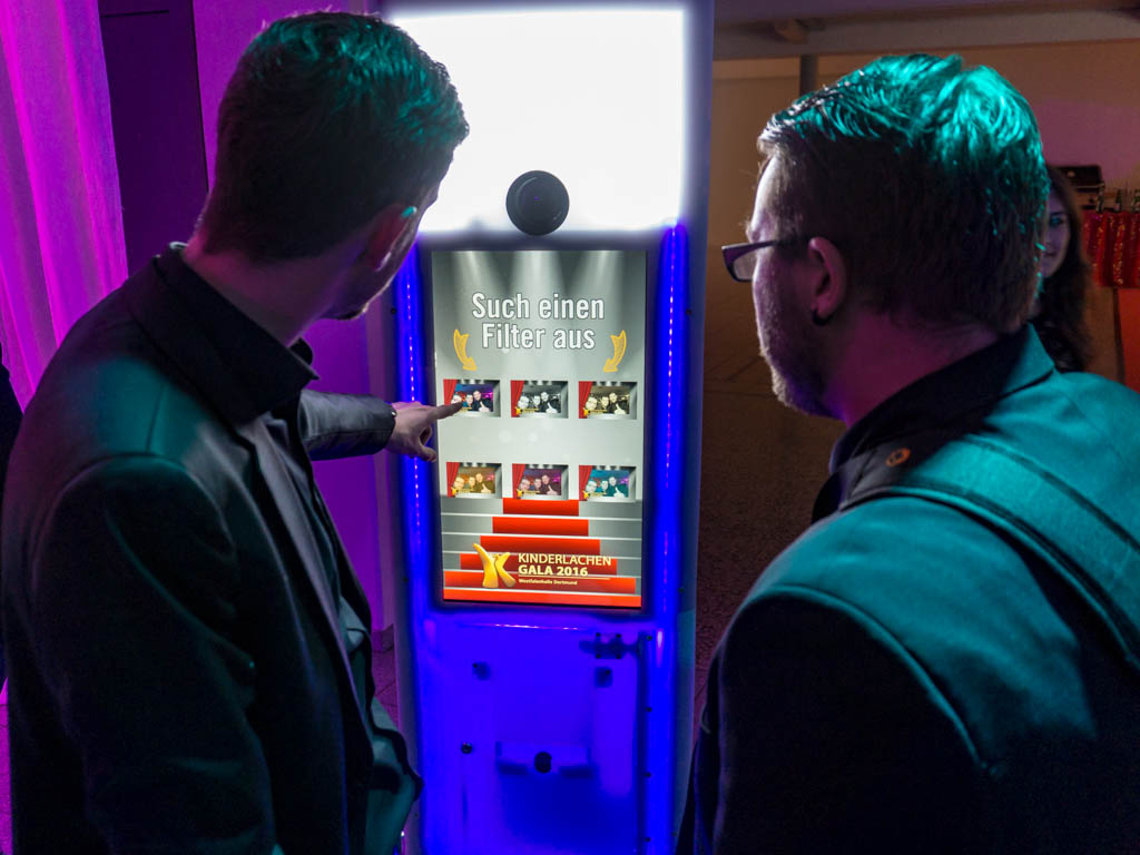 Die Fotosäule bietet ein einzigartiges Fotoerlebnis auf deinem Event. Mit frei gestaltbaren Hintergründen können deine Fotos individuell angepasst werden, sei es eine Winterlandschaft, der Weltraum oder ein Hintergrund mit deinem Firmenlogo. Die Bedienung ist kinderleicht: Per Touchscreen startest du den Countdown, wählst Hintergründe und Filter aus und schießt ein tolles Foto, das direkt vor Ort ausgedruckt wird. Für zusätzlichen Spaß können die Bilder auch sofort per E-Mail, Twitter oder Facebook geteilt werden.