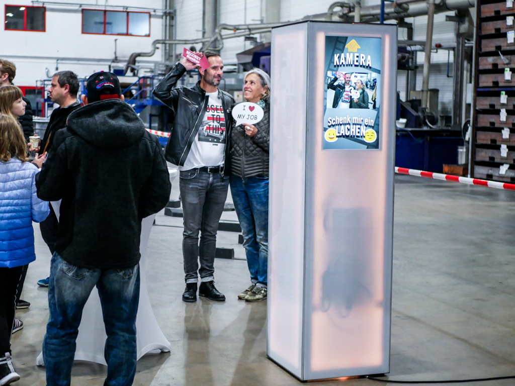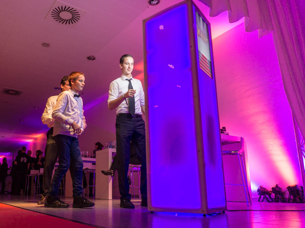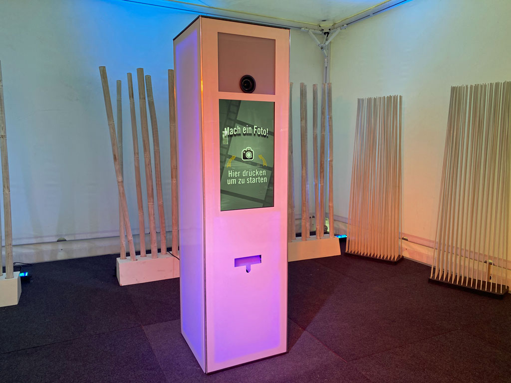 Die Fotosäule bietet ein einzigartiges Fotoerlebnis auf deinem Event. Mit frei gestaltbaren Hintergründen können deine Fotos individuell angepasst werden, sei es eine Winterlandschaft, der Weltraum oder ein Hintergrund mit deinem Firmenlogo. Mehr lesen