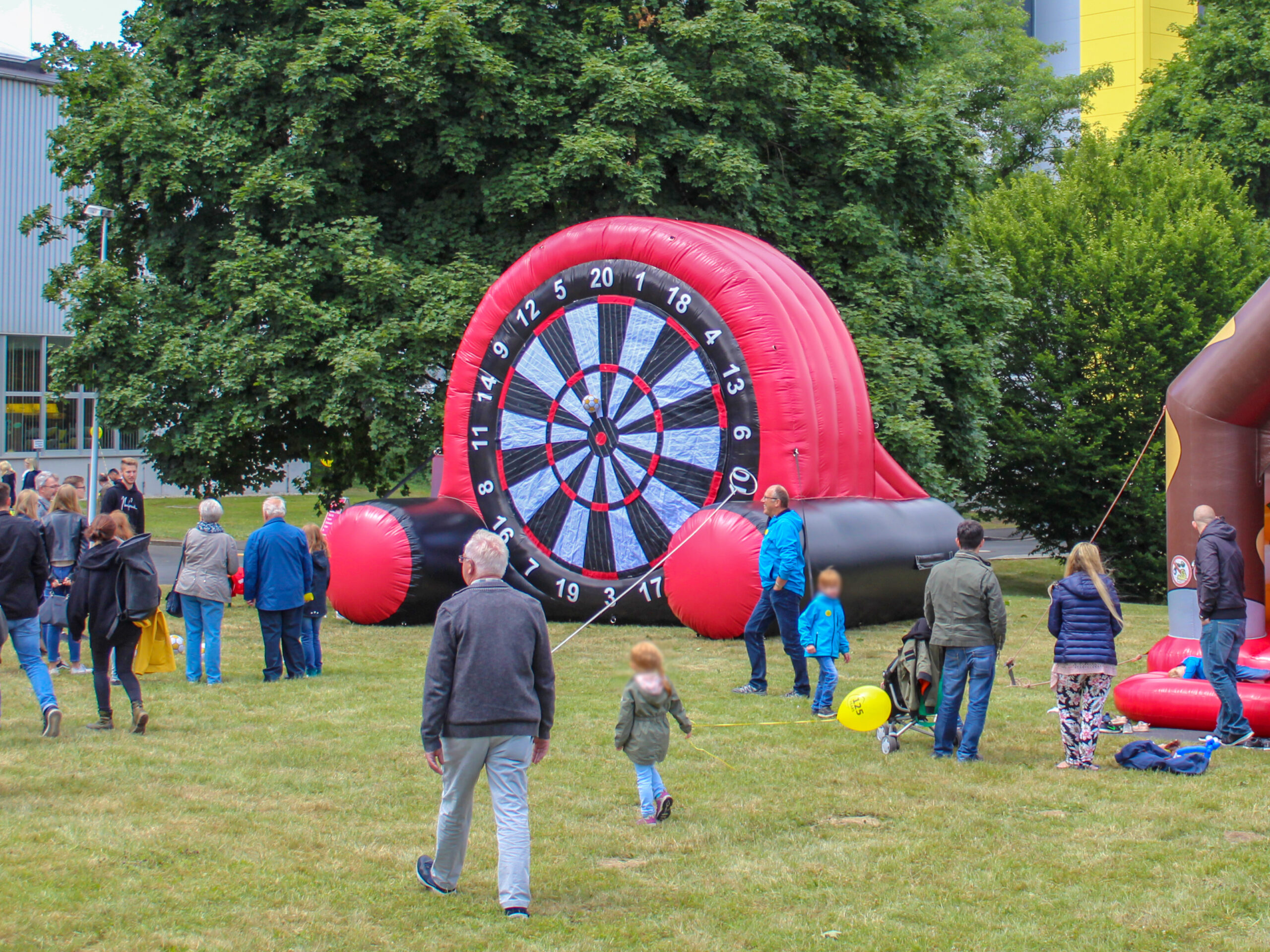 Beim Fußballdart ist Treffsicherheit gefragt. Ziel ist es, den Ball in der Mitte der Scheibe zu platzieren und dabei möglichst viele Punkte zu sammeln – ähnlich wie beim klassischen Dartspiel. Dieses Modul bietet sportlichen Wettkampf für Fußballfreunde und sorgt für Abwechslung auf deinem Event. Aufgrund ihrer Größe ist die Fußballdartscheibe schon von Weitem sichtbar und zieht garantiert die Blicke auf sich. Ideal für Wettkämpfe oder einfach nur zum Spaß.