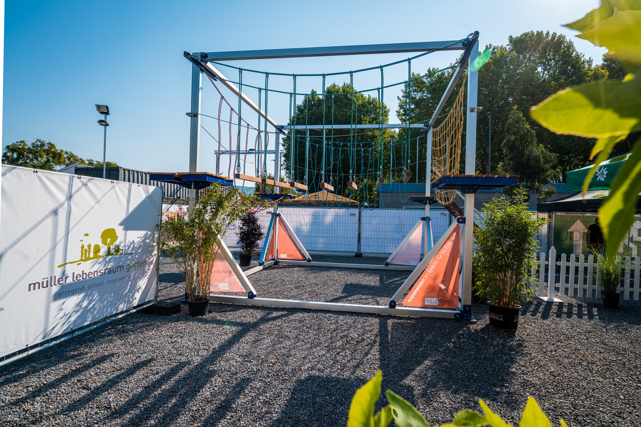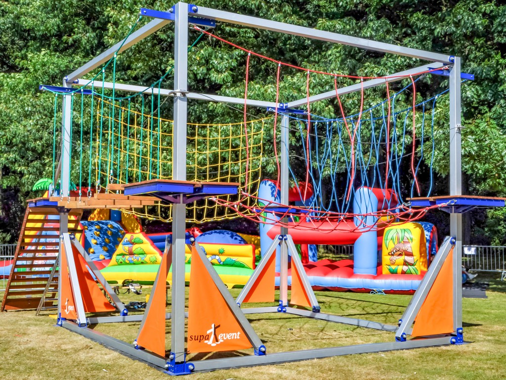 Die robuste Konstruktion und die hochwertigen Materialien gewährleisten eine lange Lebensdauer und hohe Sicherheit. Der Kinder-Hochseilgarten ist nicht nur ein Highlight für die Kinder, sondern zieht auch die Aufmerksamkeit der Erwachsenen auf sich. Setze auf diese Attraktion, um Familien anzuziehen und ein unvergessliches Event-Erlebnis zu bieten.