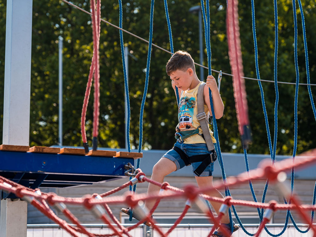 Der Kinder-Hochseilgarten bringt Abenteuer und Kletterspaß auf dein Event. Speziell für die kleinen Gäste konzipiert, bietet dieser Hochseilgarten sichere und aufregende Kletterelemente, die für strahlende Kinderaugen sorgen. Perfekt geeignet für Firmenfeiern, Stadtfeste oder kulturelle Veranstaltungen, bei denen auch die jüngsten Besucher auf ihre Kosten kommen sollen. Unsere erfahrenen Betreuer sorgen für maximale Sicherheit und begleiten die Kinder bei ihren Kletterabenteuern.