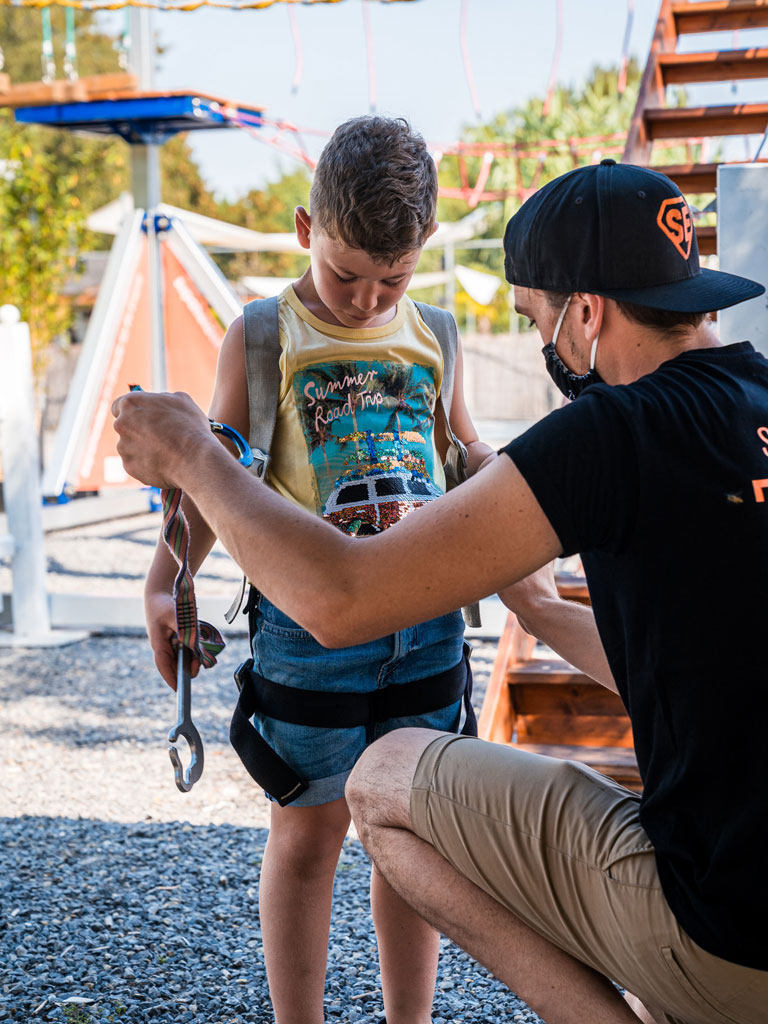 Sichere Kletteraction mit dem Kinder-Hochseilgarten