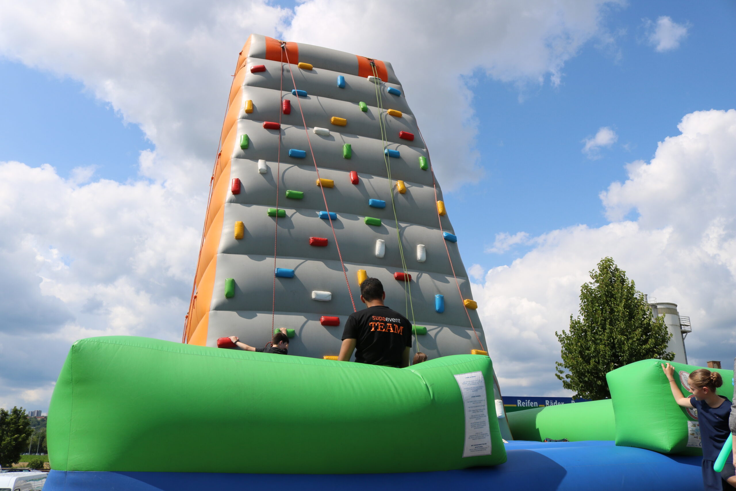 Die aufblasbare Kletterwand XL ist die perfekte Herausforderung für jedes Event. Mit einer Höhe von 8 Metern bietet sie Kletterspaß für Groß und Klein. Jeder Kletterer wird durch unsere erfahrenen supaHELDEN gesichert, sodass Sicherheit und Spaß garantiert sind. Für extra Spannung kann auch ein Duell zwischen zwei Kletterern stattfinden. Die kompakte und schnelle Aufbauweise macht die Kletterwand XL zu einer idealen Attraktion, die auf keiner Veranstaltung fehlen sollte.