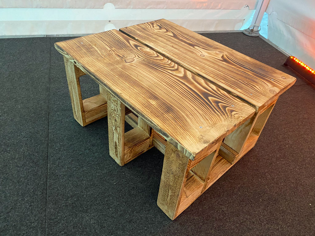 Der Lounge-Tisch im Palettenlook ist die ideale Ergänzung für jede Lounge- oder Chill-out-Area auf deinem Event. Dieser Tisch verbindet rustikalen Charme mit modernem Design und bietet eine stabile, attraktive Ablagefläche für Getränke, Snacks oder Dekorationen. Mehr lesen