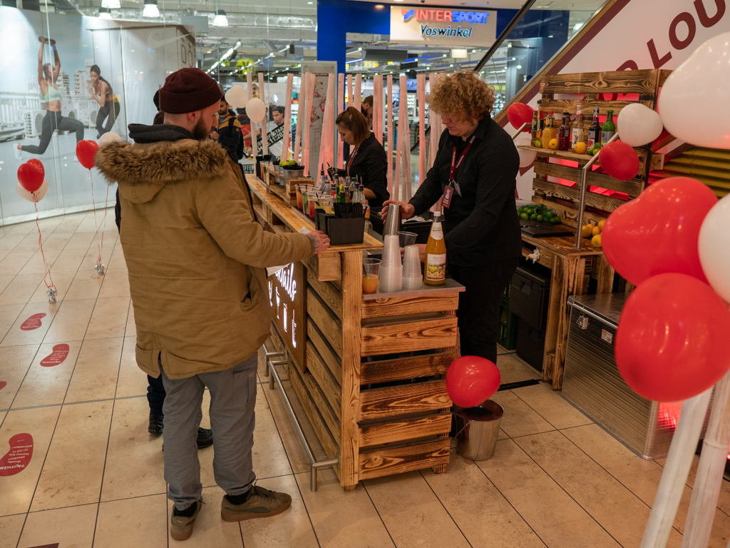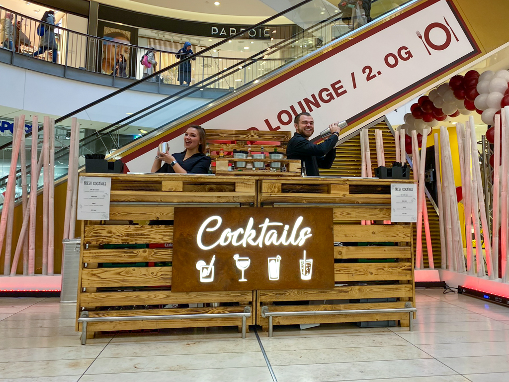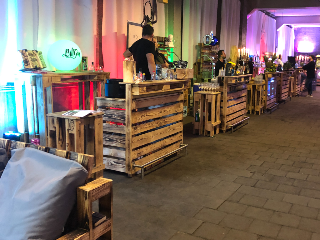 Die Mobile Cocktailbar im Palettenlook Rustikal bringt eine einzigartige, rustikale Atmosphäre auf dein Event. Diese Bar kombiniert die natürliche Eleganz von Holzpaletten mit der Funktionalität einer voll ausgestatteten Cocktailstation. Ideal für Outdoor-Events, Sommerfeste oder Firmenfeiern, fügt sich die Bar harmonisch in jede Umgebung ein und sorgt für ein entspanntes Ambiente. Professionelle Barkeeper mixen köstliche Cocktails direkt vor Ort, während das rustikale Design der Bar als echter Blickfang wirkt und den Gästen eine unvergessliche Erfahrung bietet.
