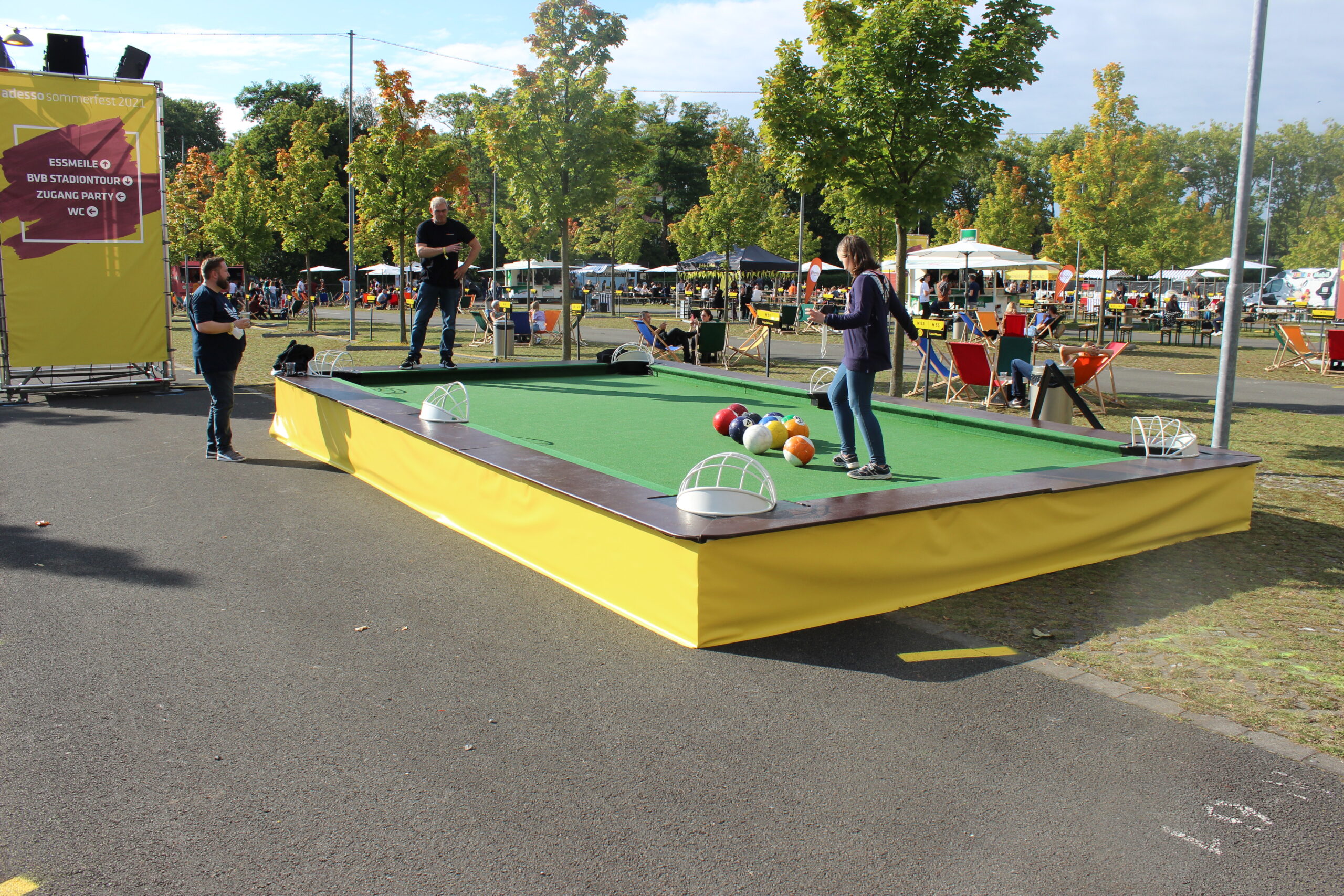 Das PoolBall Fußballbillard XL vereint die Elemente von Fußball und Billard zu einem einzigartigen Spielerlebnis. Auf einem übergroßen Billardtisch agieren die Spieler mit Fußbällen, die wie Billardkugeln eingelocht werden müssen. Diese Kombination aus Geschicklichkeit und Spaß ist ideal für Events aller Art, sei es für Firmenfeiern, Teambuilding-Events oder private Partys. PoolBall XXL bietet eine unterhaltsame und sportliche Herausforderung, die sowohl Fußball- als auch Billardfans begeistert. Mit seiner beeindruckenden Größe und der kreativen Spielidee zieht das PoolBall Fußball