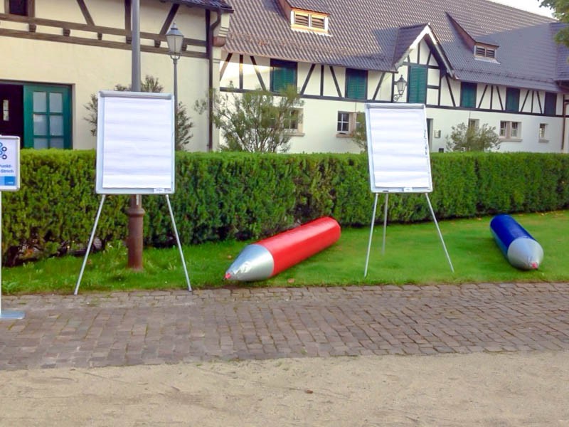 Der Riesenstift bietet Malspaß pur und sorgt für jede Menge Lacher. Drei Personen versuchen gleichzeitig, mit dem überdimensionalen Stift ein Bild zu malen. Das Montagsmaler-Mannschaftsspiel eignet sich hervorragend für Team-Events und garantiert lustige Momente. Ein passendes Flipchart inklusive Papier kann auf Anfrage ebenfalls bereitgestellt werden. Dieses Modul ist ideal für kreative und unterhaltsame Aktivitäten auf deinem Event.
