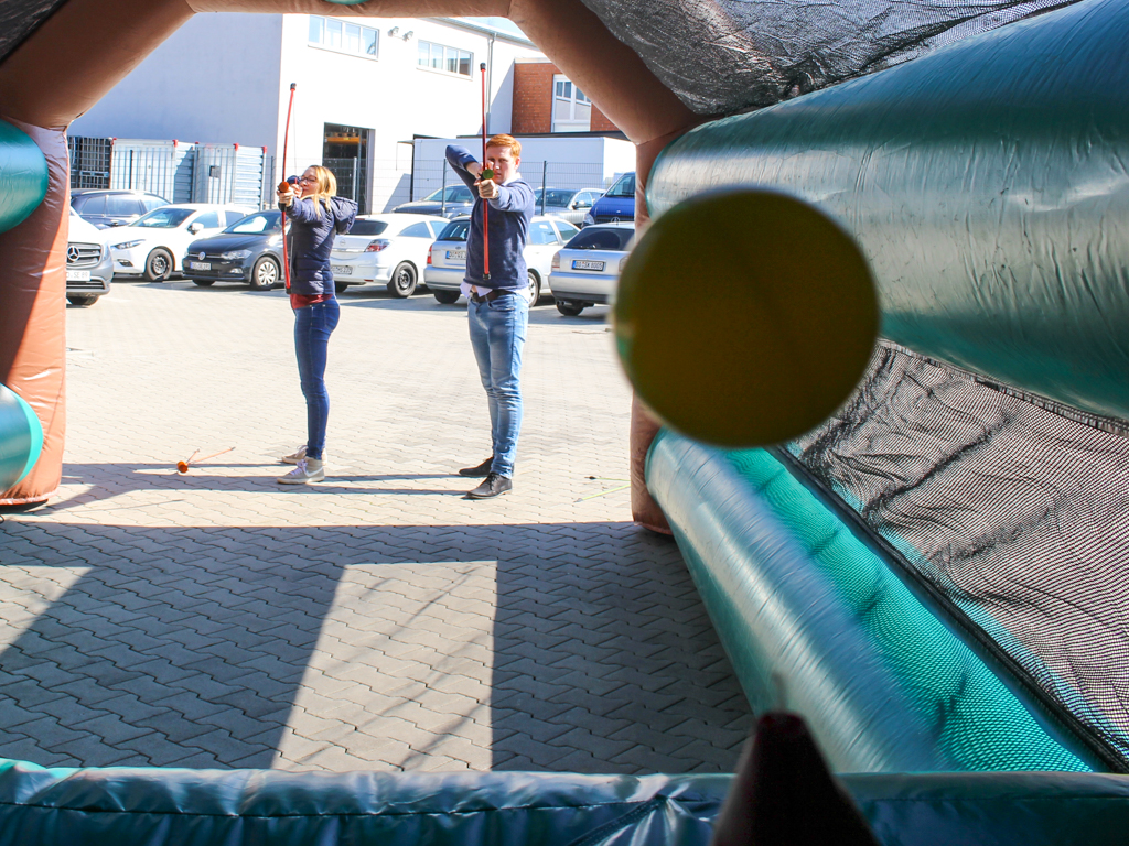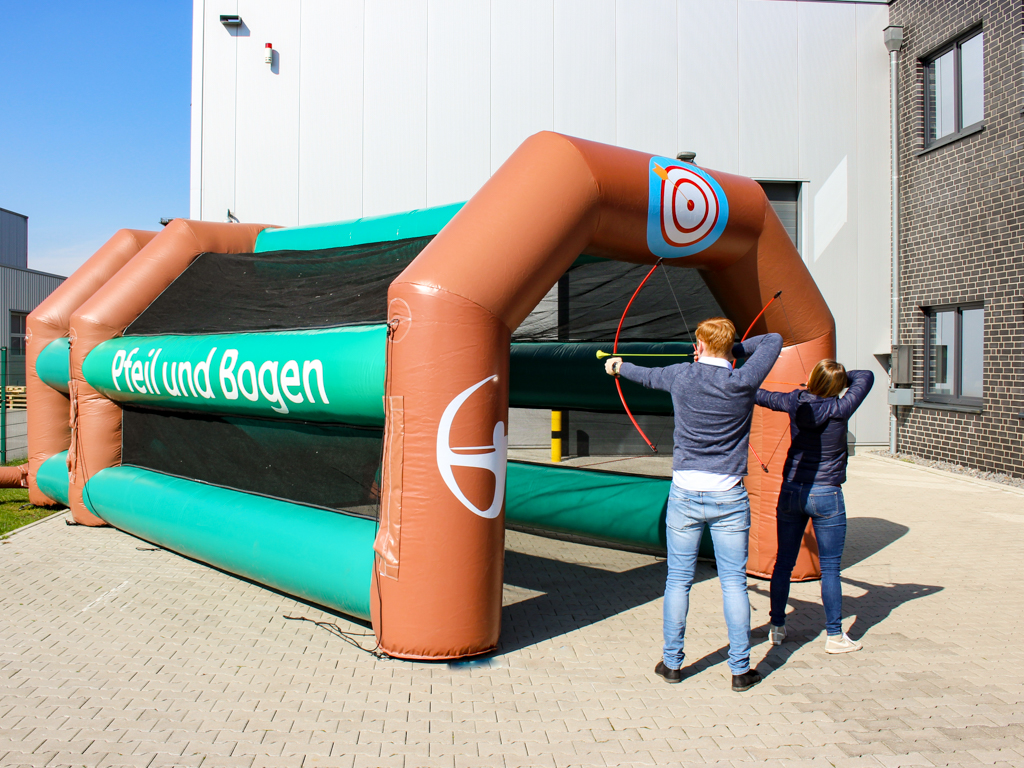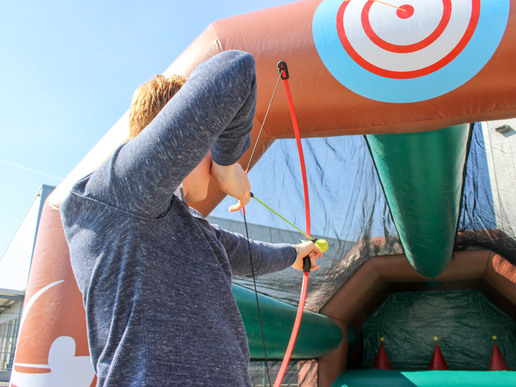 Das Soft-Bogenschießen bietet den klassischen Bogensport in einer sicheren Variante, ideal für Events mit Kindern und Anfängern. Die weichen Pfeile und der intuitive Umgang machen es zu einer spannenden und unterhaltsamen Aktivität für alle Altersgruppen. Das Ziel ist es, mit den Softpfeilen die Zielscheibe präzise zu treffen und dabei die eigene Geschicklichkeit unter Beweis zu stellen. Dieses Modul ist perfekt für Sportevents, Teambuilding-Aktivitäten oder Familienfeste.
