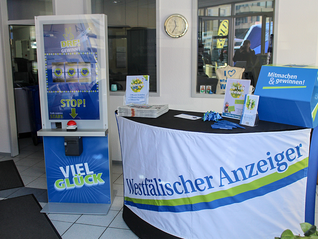 Mit der SUPA Gewinnmaschine bringst du hohe Aufmerksamkeit und steigende Besucherfrequenz auf dein Event oder deinen Messestand. Die Maschine wird per eingescanntem Gewinncode aktiviert und der Kunde stoppt sie per Buzzer, um einen Sofortgewinn zu erhalten. Die Häufigkeit der Gewinne kann voreingestellt werden. Das System bietet umfangreiche Branding-Möglichkeiten und kann zur Adressgenerierung, Marktforschung oder als klassische Gewinnsäule genutzt werden.