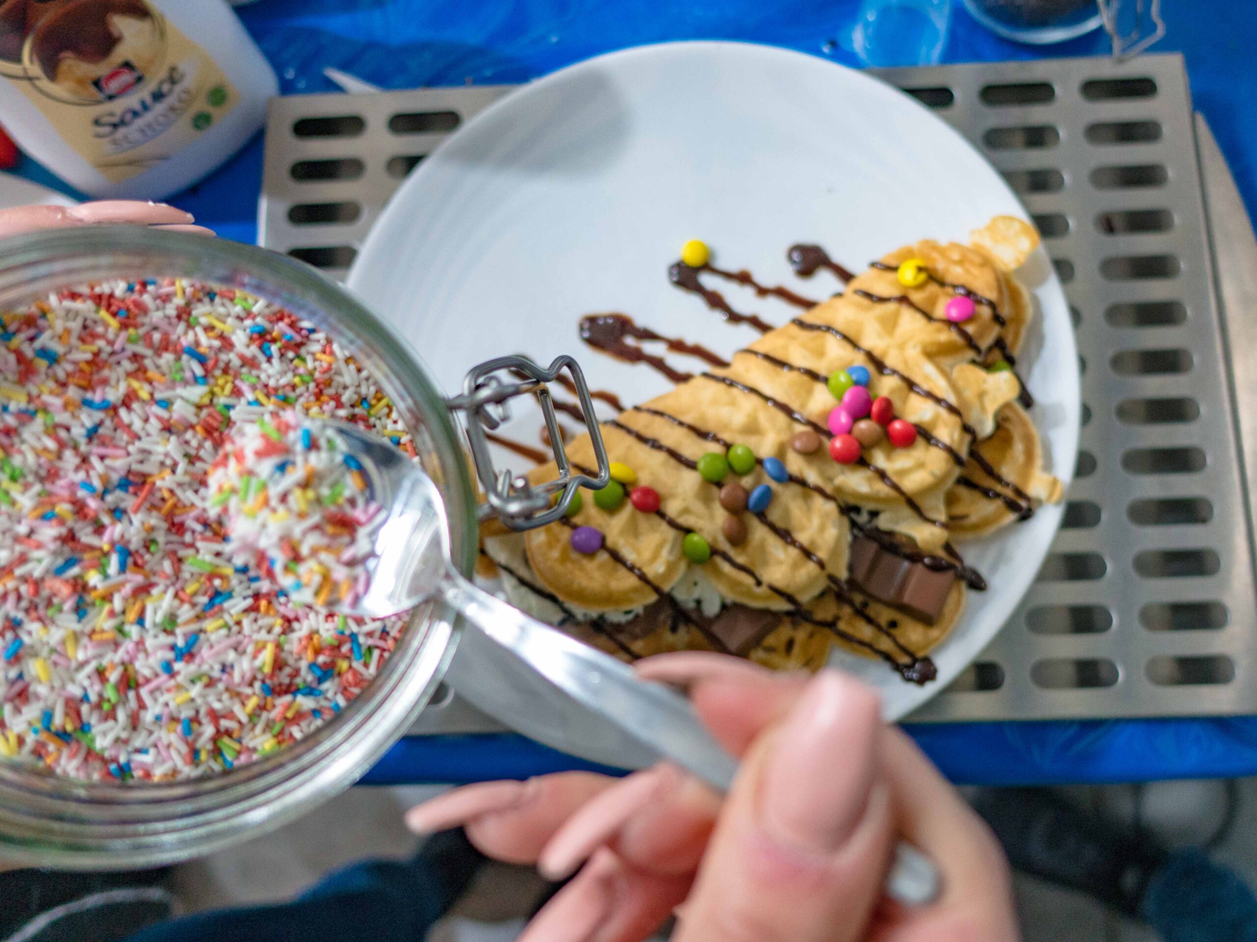 Erlebe den ultimativen Waffelgenuss mit unseren Supa Waffeln. Frisch zubereitet und mit einer Vielzahl an Toppings versehen, lassen diese Waffeln keine Wünsche offen. Ob Schokoladensoße, bunte Streusel, Schokostreusel oder ein Berg voll Sahne – hier ist für jeden etwas dabei. Mehr lesen