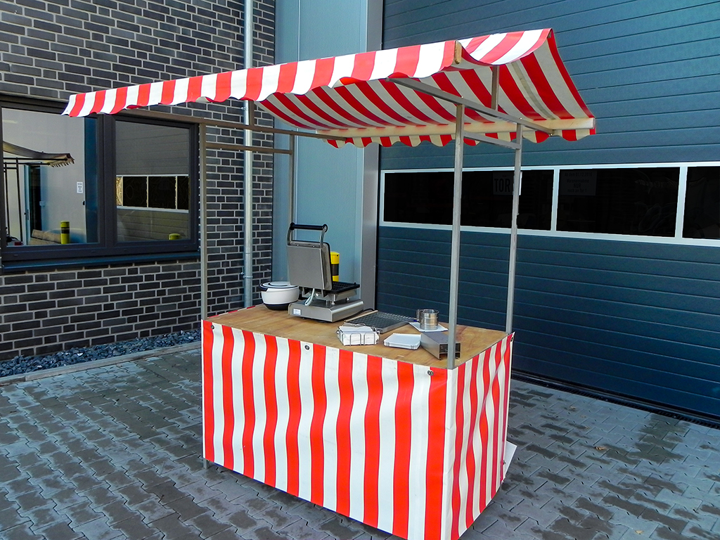 Vom Waffelstand aus weht der leckere Duft frischer Waffeln überall hin und lockt das Publikum an. Noch heiß und mit Puderzucker schmecken die Waffeln am Stiel besonders gut. Die Aktion beinhaltet 100 Stück Waffeln am Stiel. Die Aktion kann auch in einem unserer Marktstände, mit dem LED-Tresen oder der Eventtheke im Palettenlook präsentiert werden. Auf Wunsch sind auch verschiedene Toppings möglich.