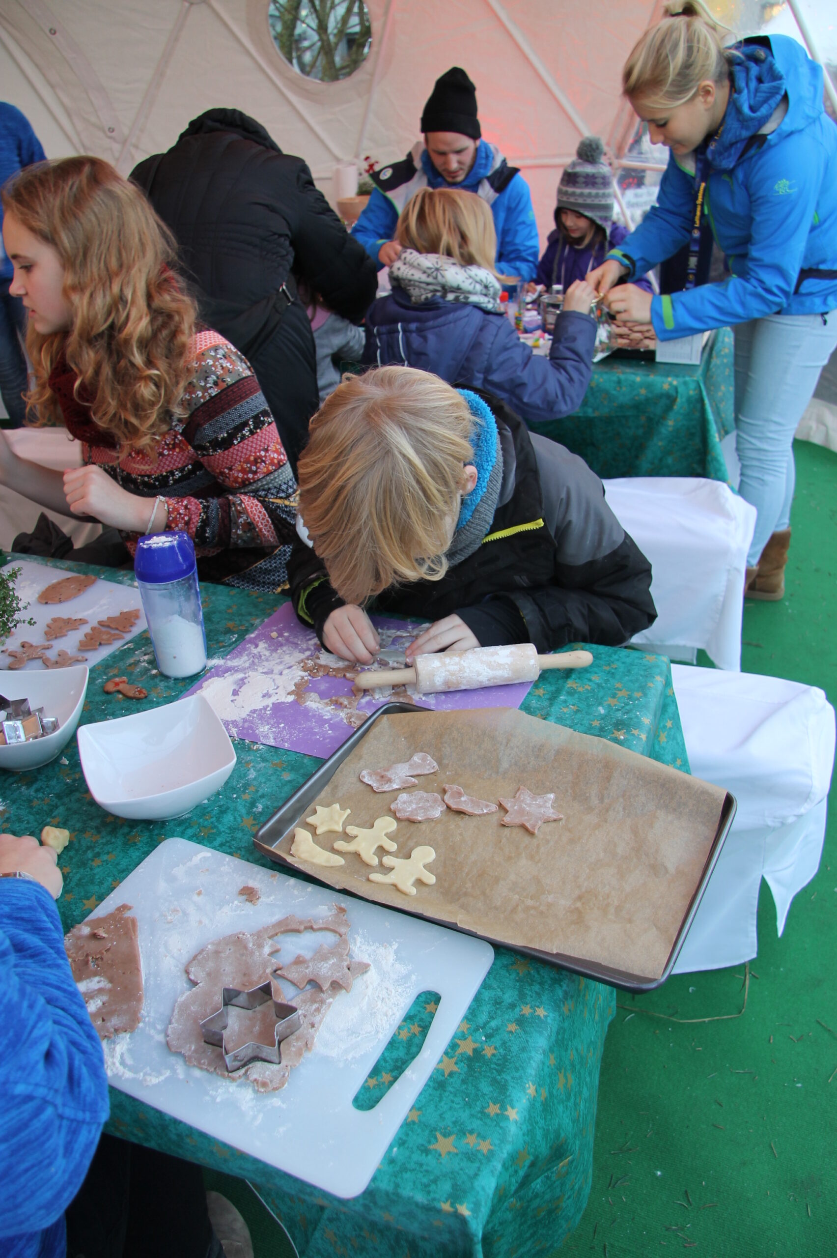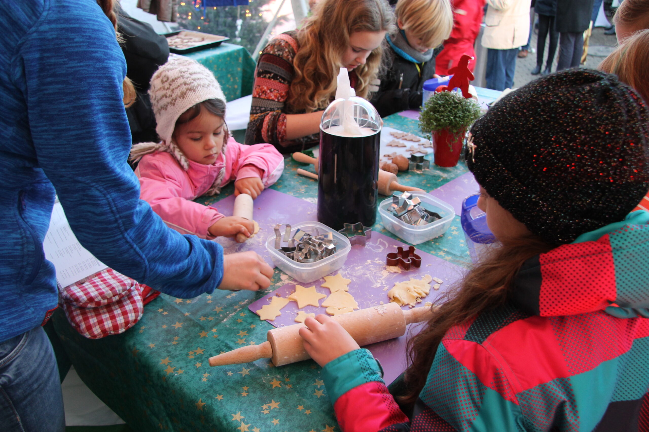 Die Weihnachtsbäckerei ist ein wunderbares Highlight für jede winterliche Veranstaltung, das sowohl Kinder als auch Erwachsene begeistert. In der festlich dekorierten Backstation können die Teilnehmer ihre eigenen Plätzchen ausstechen, verzieren und anschließend genießen oder mit nach Hause nehmen. Die Weihnachtsbäckerei verbreitet den herrlichen Duft von frisch gebackenen Keksen und sorgt für eine gemütliche, festliche Atmosphäre auf deinem Event.