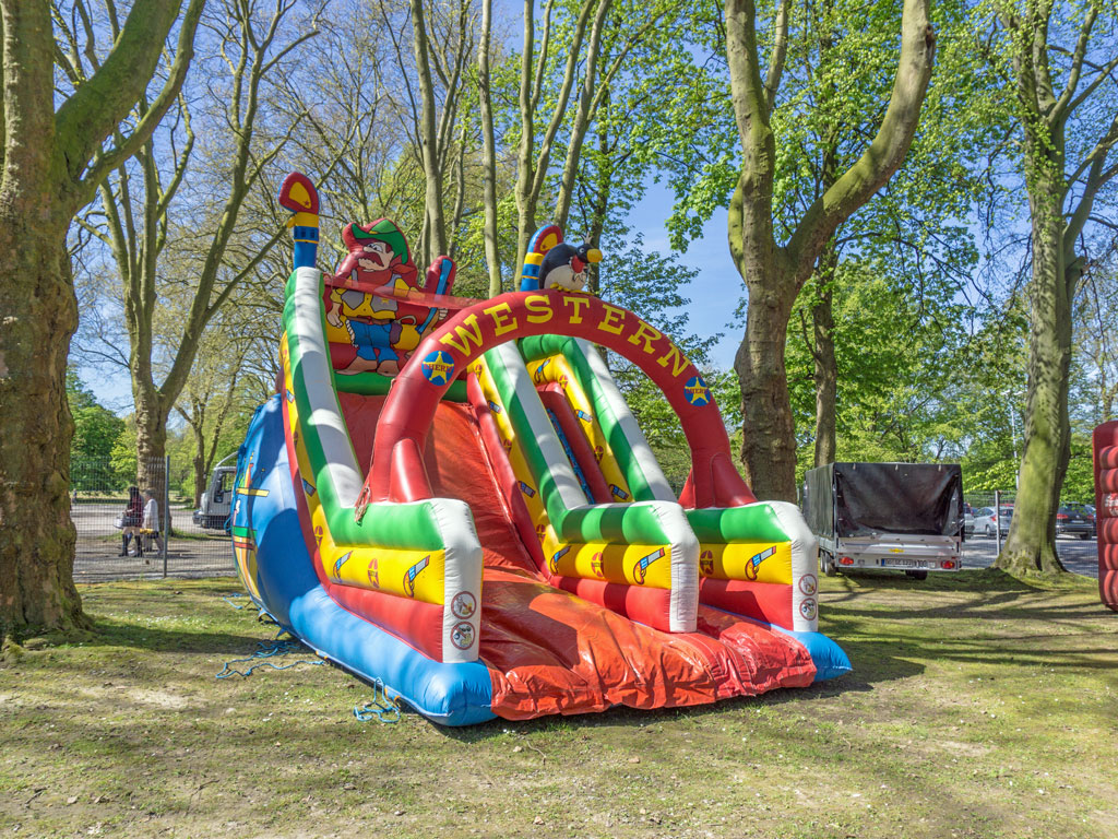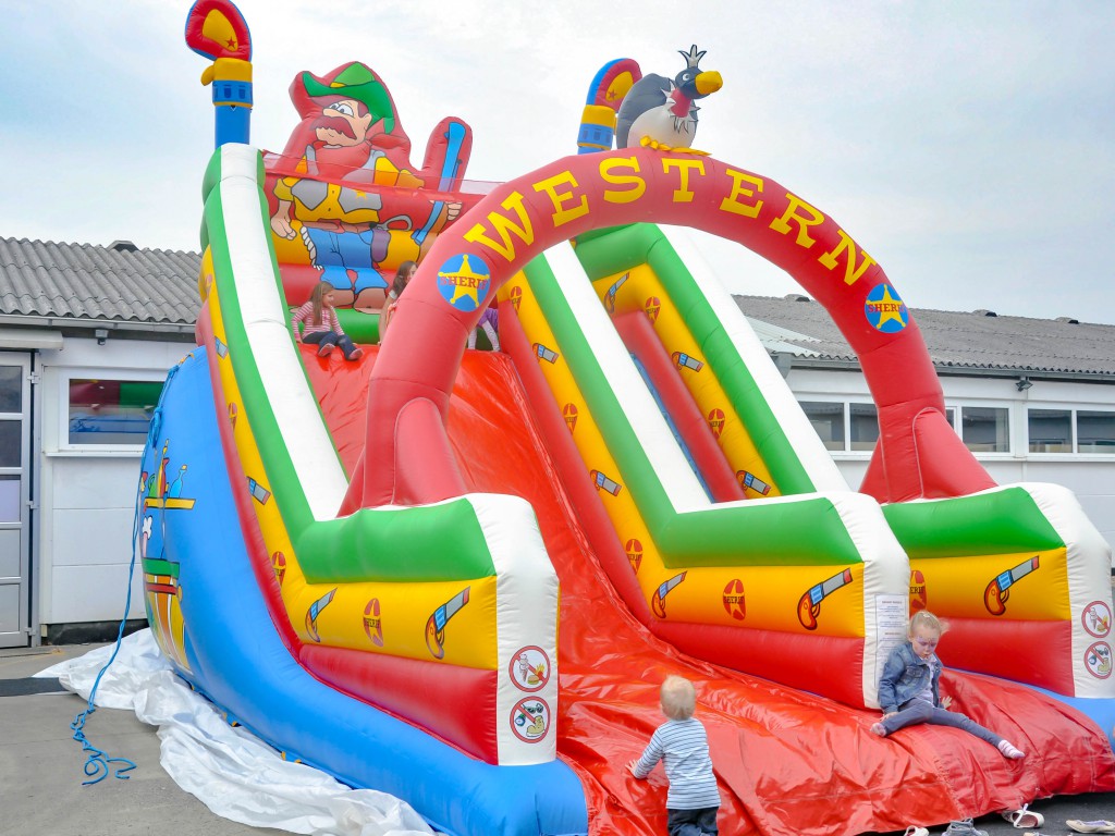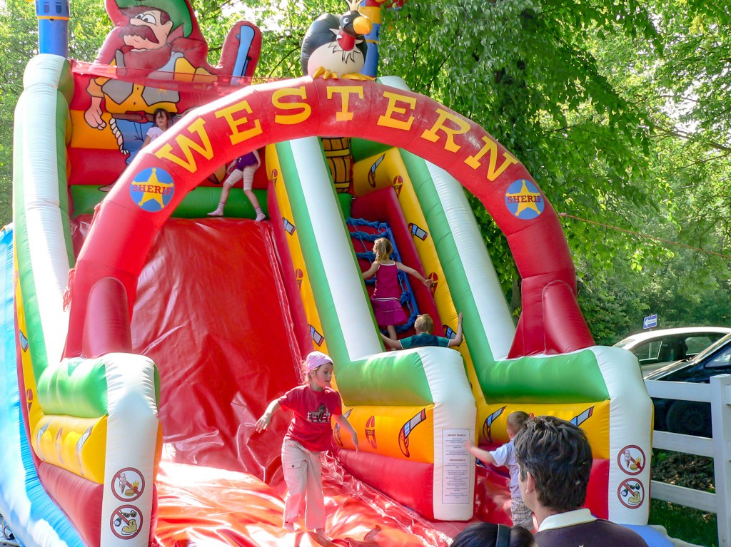 Die Westernrutsche bietet riesigen Rutschspaß im Stil des Wilden Westens. Ideal für jede Westernparty, lässt sich die große Rutsche perfekt mit Modulen wie Rodeo Bulle, Goldwaschen, Westerncity, Indianerdorf, Hüpfburg Cowboy oder Hüpfburg Saloon kombinieren. Mit ihrem beeindruckenden Design zieht sie alle Blicke auf sich und sorgt für grenzenlosen Spaß bei deinen Gästen. Sprich uns gerne an und wir planen deine Westernparty.