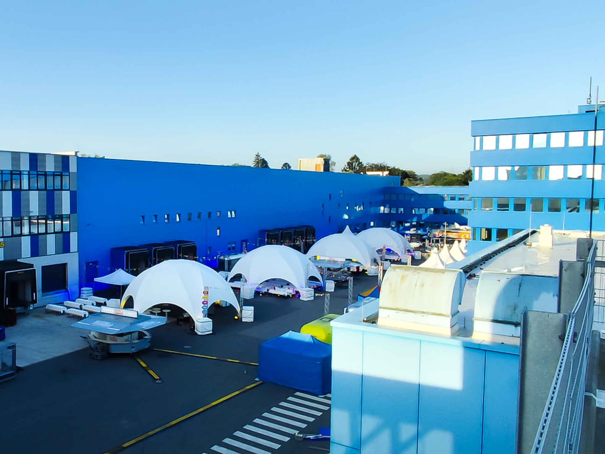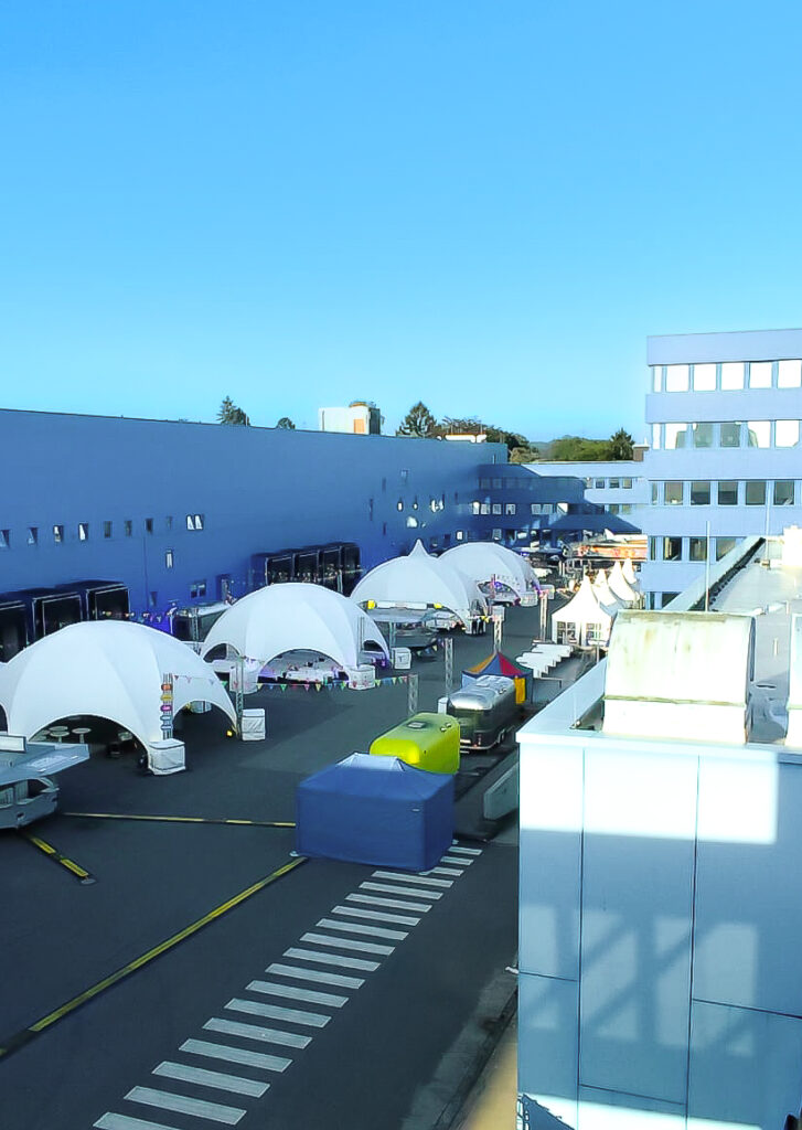 • Kompletter Aufbau der Veranstaltung auf dem Vorplatz der Tedi-Zentrale