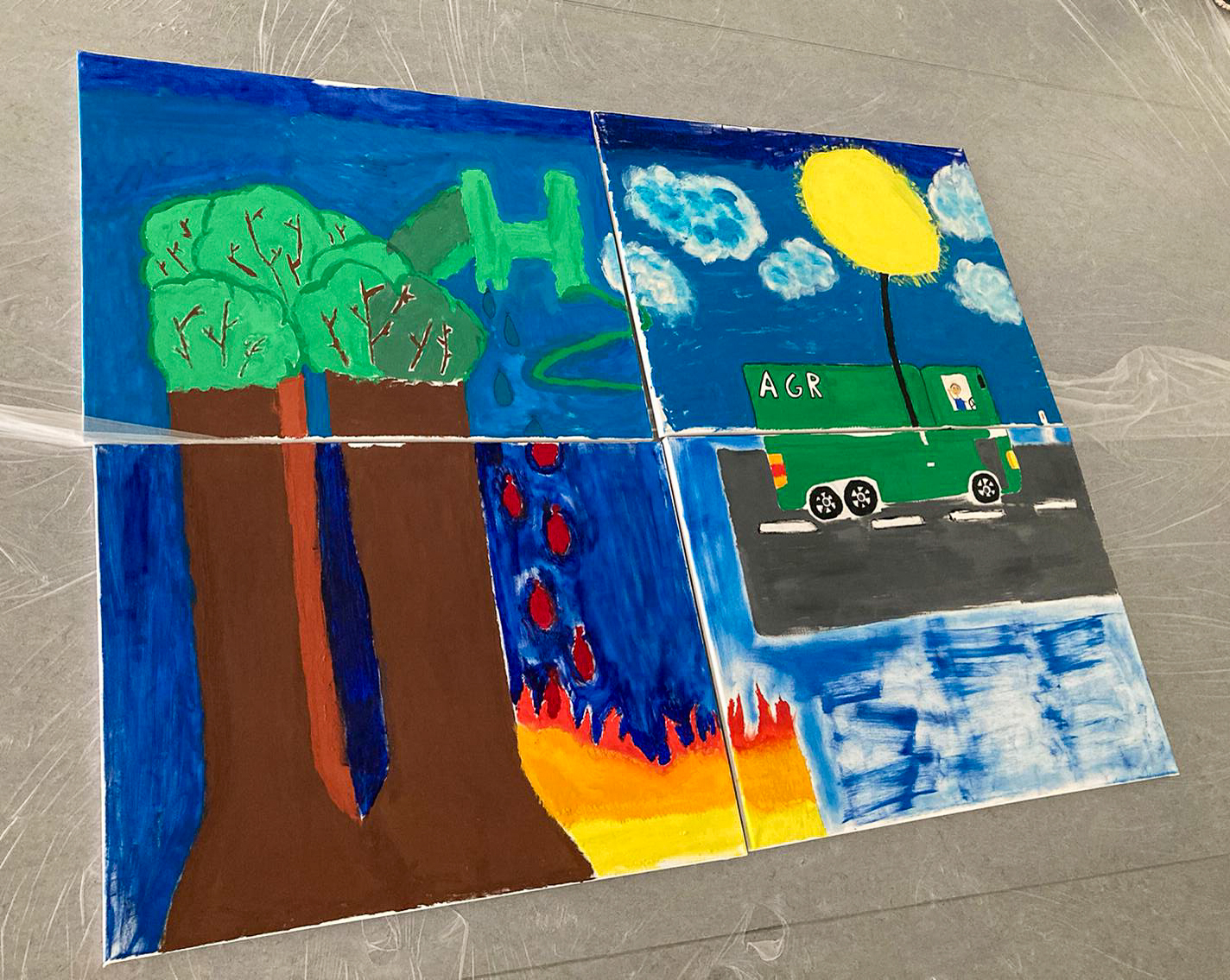 16 Azubis der AGR Gruppe malten in Teams ein gemeinsames Kunstwerk zum Thema Nachhaltigkeit.