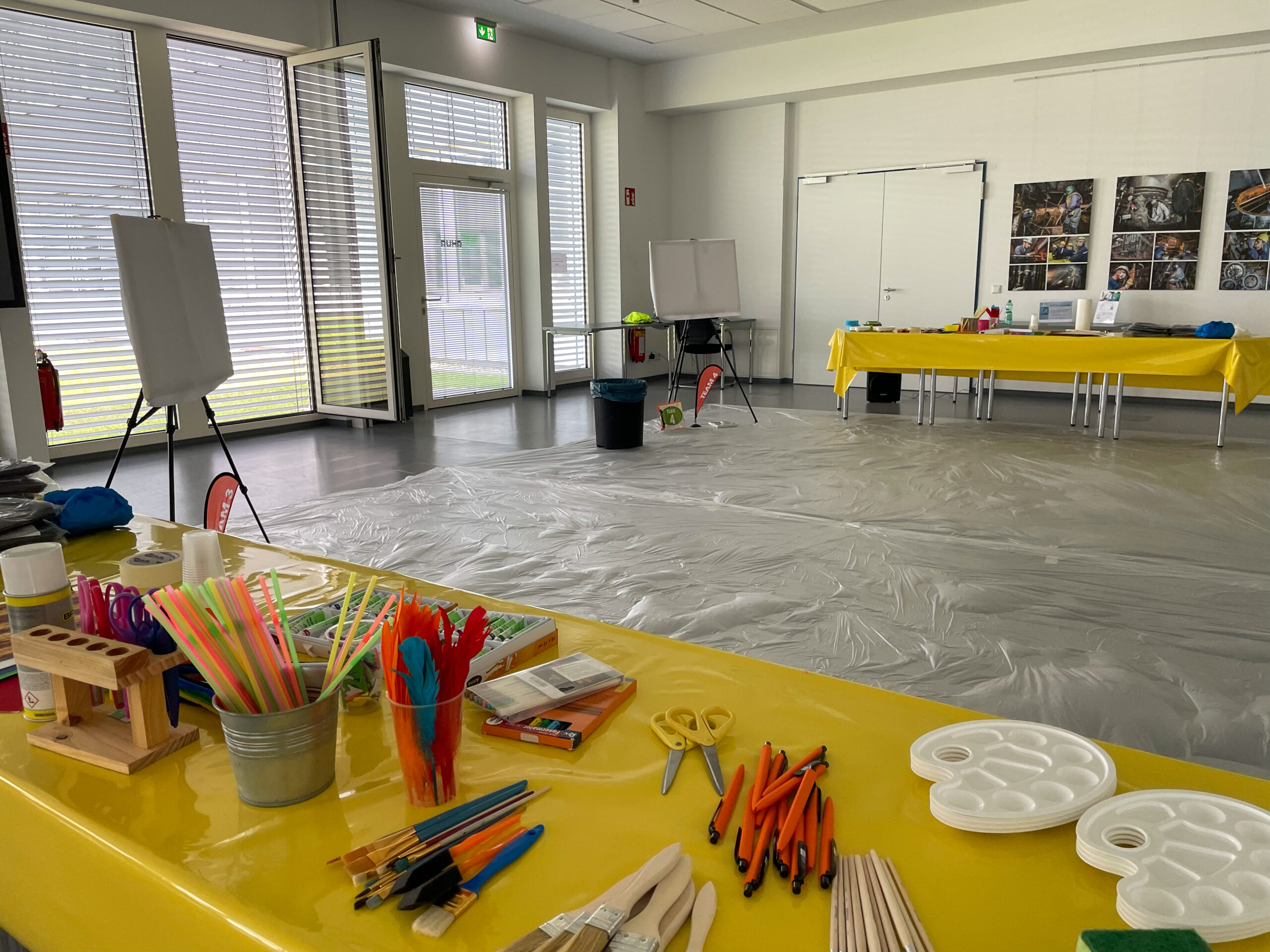 • Bereitstellung der Materialien inklusive Leinwände, Farben, Pinsel, Schutzkleidung und Abdeckfolie