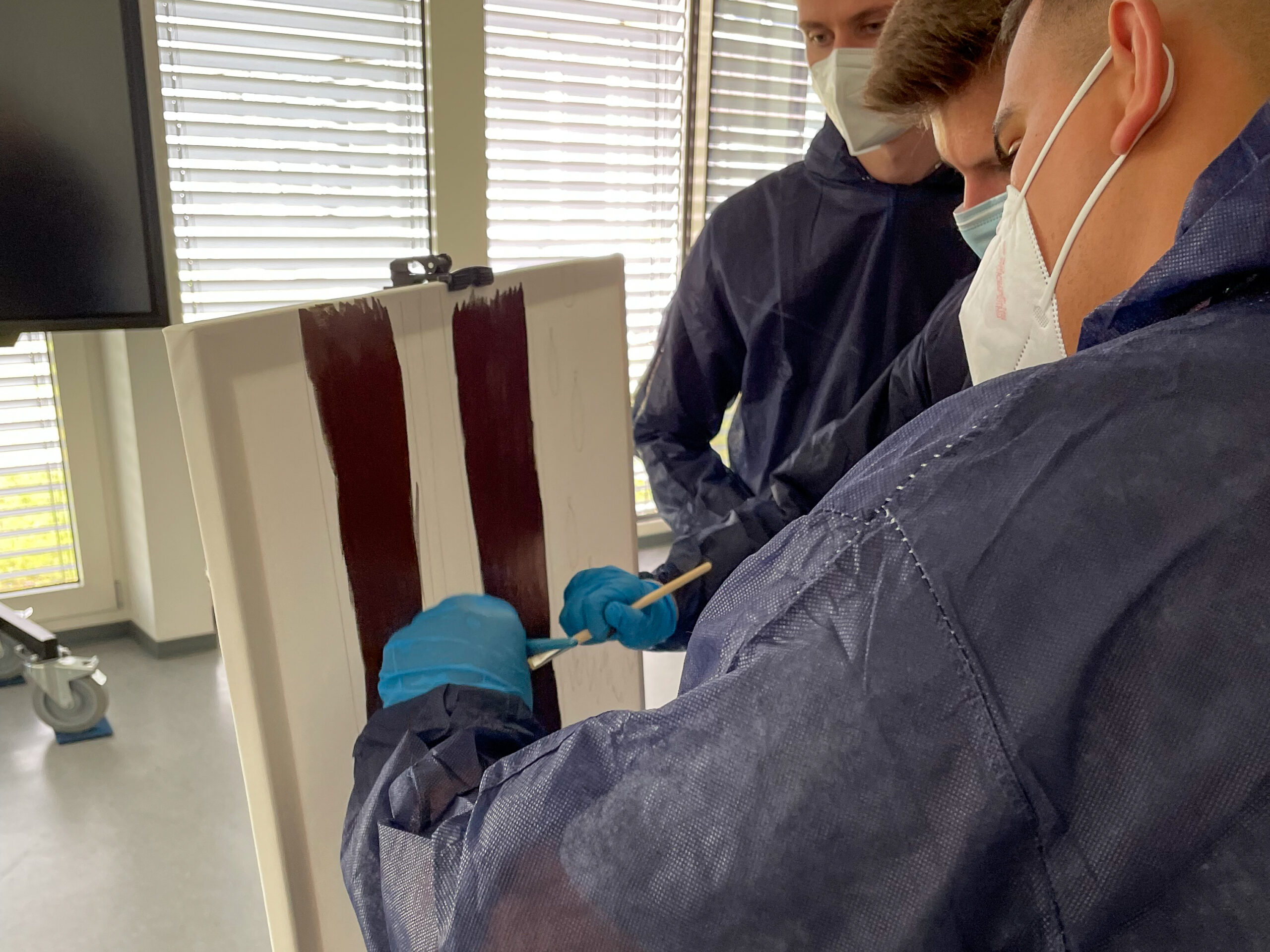 • Einsatz von Schutzkleidung und Abdeckfolie zur Vermeidung von Verschmutzungen an Kleidung und am Veranstaltungsort
