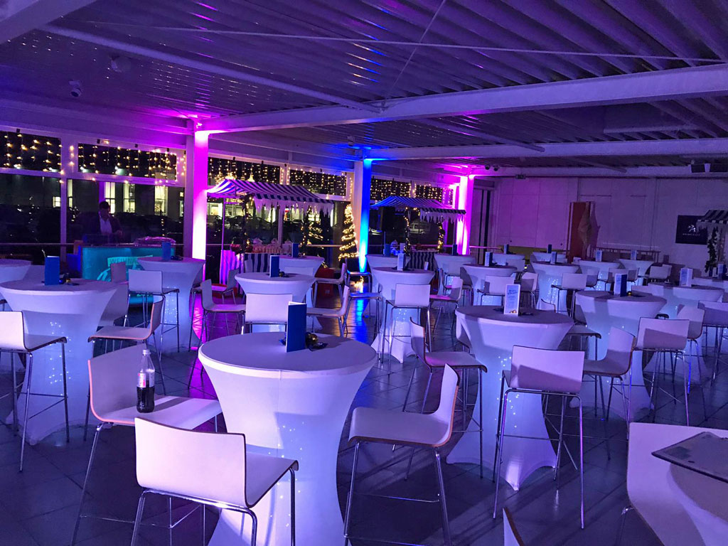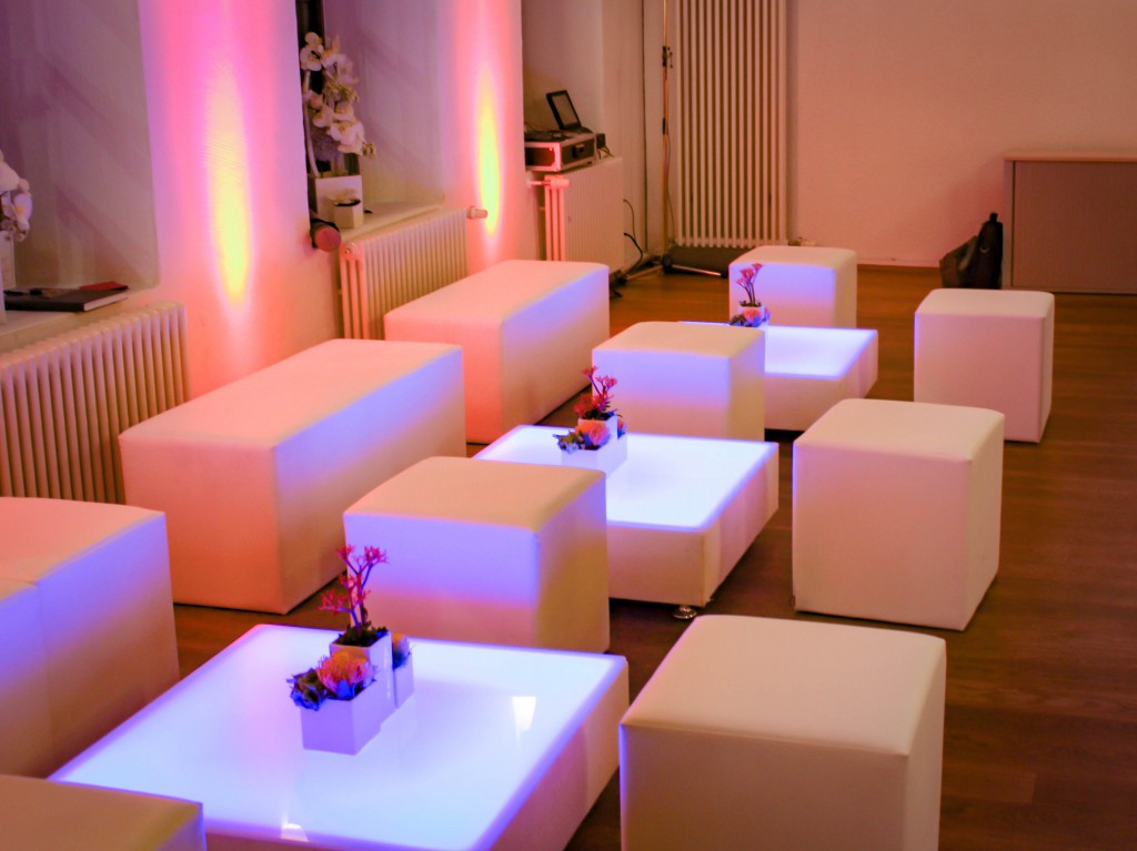 Wir sorgen für einen angenehmen Aufenthalt deiner Gäste. Stehtische, Festzeltgarnituren, Sonnenschirme und passende Dekoration runden das Gesamtkonzept ab. Gerne überdachen wir deine Eventfläche mit unseren Kuppelzelten, die sind ein echter Hingucker! Oder benötigst du eine Bühne für eine Rede oder Verlosung? Ebenfalls kein Problem. Sprich uns gerne auf weitere Ausstattung und Technik an!
